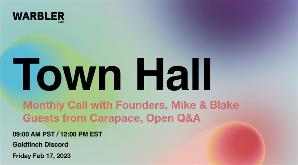 Fri 2/17 9AM PT/12PM ET with Co-founders @sall and @_blakewest in our Discord along with @rohitsabnis and @taisuke_mino from @carapacefinance. Join for updates and a sneak peek of their upcoming launch. discord.gg