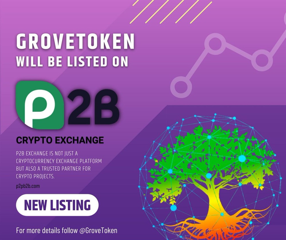 P2B will be the 3rd largest among the exchanges where GroveCoin is listed