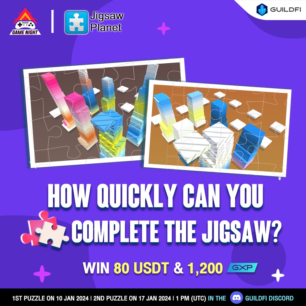 GuidlFi is set to host a Jigsaw Puzzle contest on Discord on January 10th and 17th starting at 1 PM UTC. Participants will have the opportunity to complete a jigsaw puzzle for a chance to win from a prize pool of 80 USDT and 1,200 GXP.