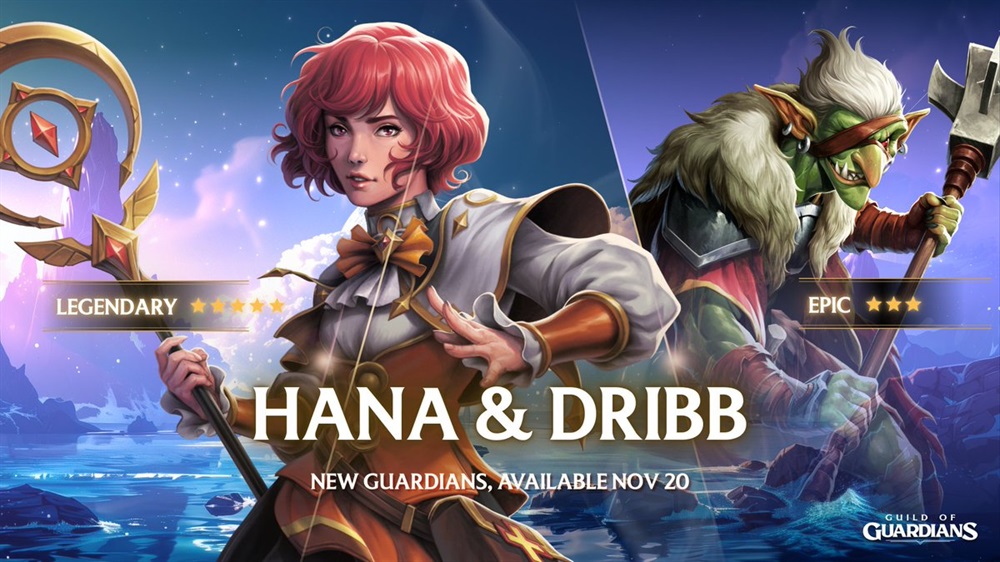 Guild of Guardians has announced that two new characters, Hana, The Miraculous Mage, and Dribb, The Goblin Champion, will be available on November 20th at 06:00 UTC.