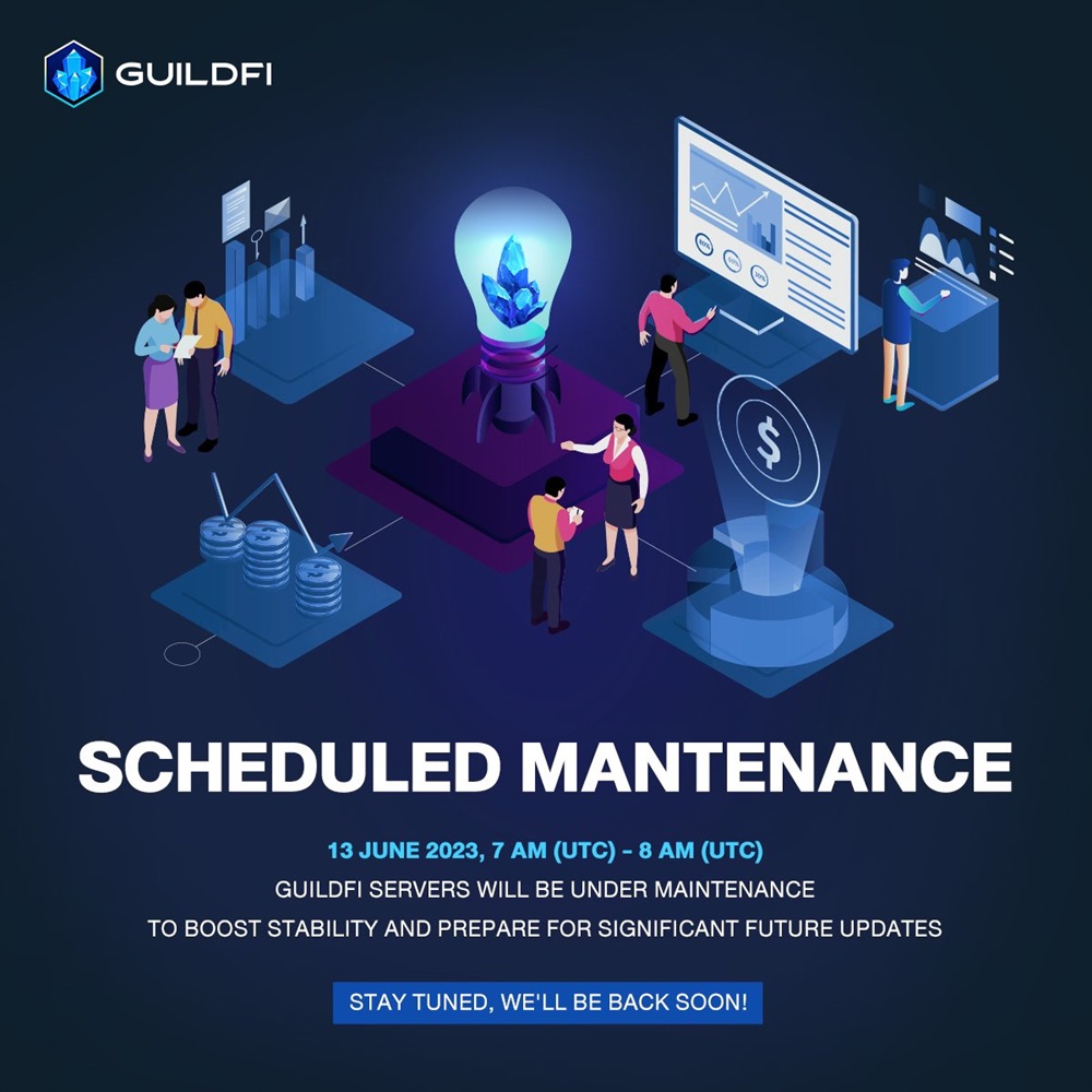 Our platform, https://guildfi.com/, will undergo maintenance on June 13, 2023, from 7 AM (UTC) to 8 am (UTC), to enhance stability and prepare for significant future updates 🧑🏻🔧