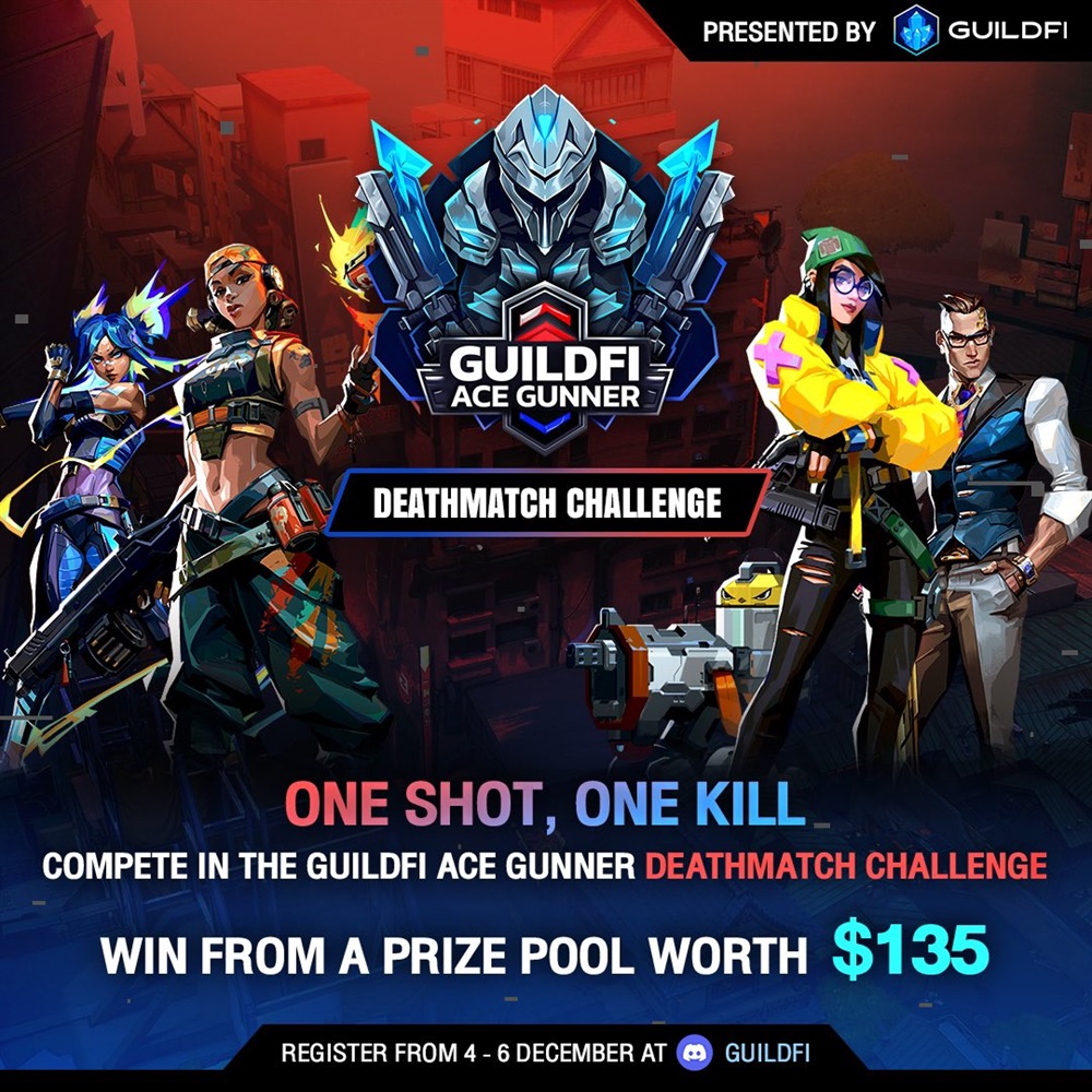 GuildFi is organizing an event titled “GuildFi Ace Gunner Deathmatch Challenge”. The competition is set to take place on the 8th of December at 12 PM UTC. The event involves a fight to victory in a deathmatch challenge, with the potential for participants to win prizes worth over $135. Registration for the event is open from the 4th to the 8th of December.