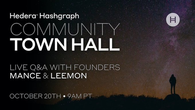 Join us Tuesday, October 20th for our next Community Town Hall with Hedera co-founders, @ManceHarmon, and @leemonbaird. They will be joining us live to answer some of the community’s most frequently asked questions. Register here: hedera.zoom.us