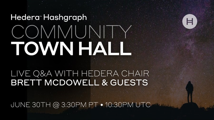 Don’t forget to register below for our quarterly Town Hall this Thursday June 30th at 3:30PM (PT) featuring hedera Chairman brettmcdowell,SVP of Communications zenobiaZAG and more answering some of the community’s most frequently asked questions.