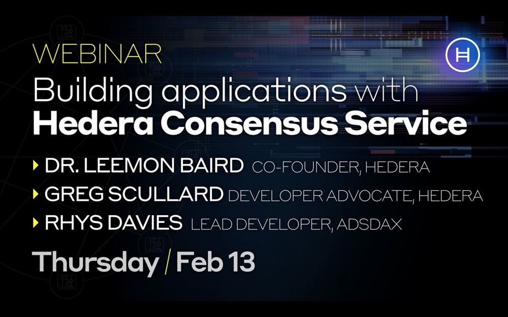 Join us for this upcoming webinar and exciting Hedera Consensus Service announcement.