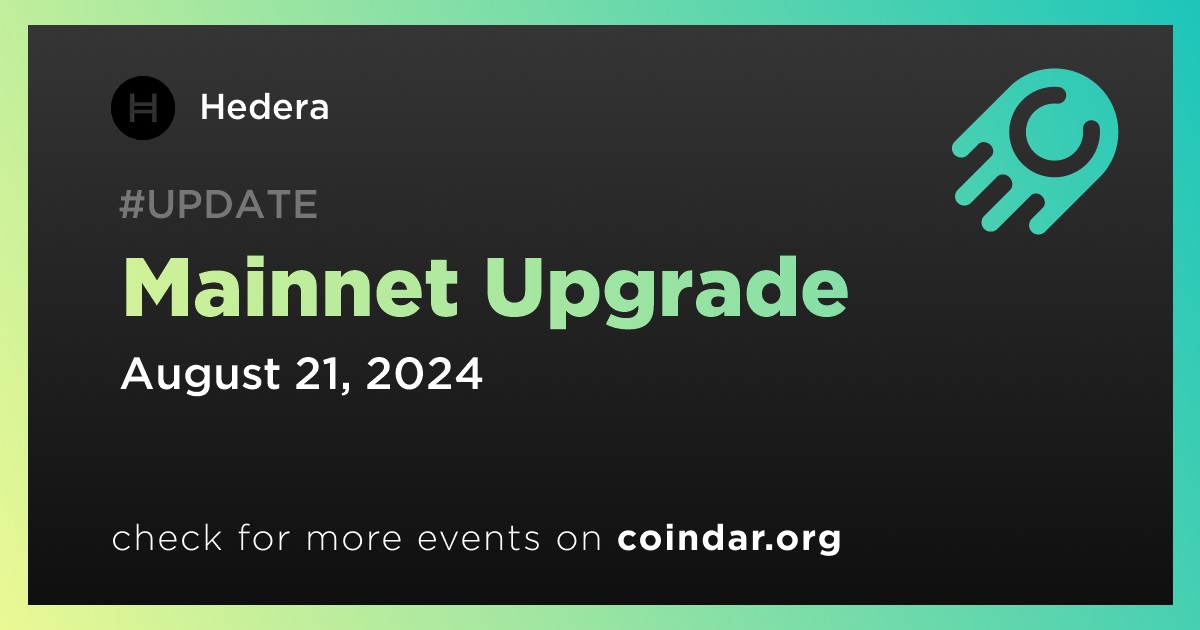 Hedera to Conduct Mainnet Upgrade on August 21st