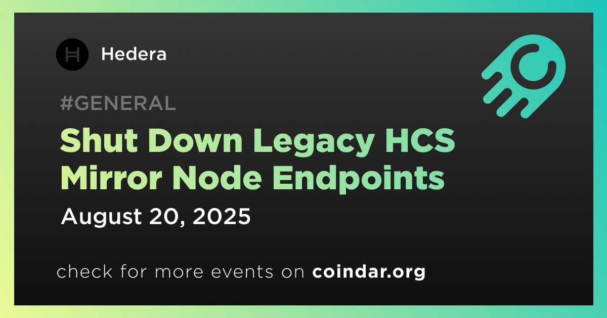 Hedera has issued a final deprecation notice confirming that legacy Hedera Consensus Service (HCS) mirror node endpoints will be permanently shut down on August 20, at 15:00 UTC. Immediate action is required from developers and node operators to migrate to secure, updated endpoints in order to maintain uninterrupted connectivity. This move finalizes Hedera’s phased retirement of outdated infrastructure in favor of more secure and scalable alternatives.