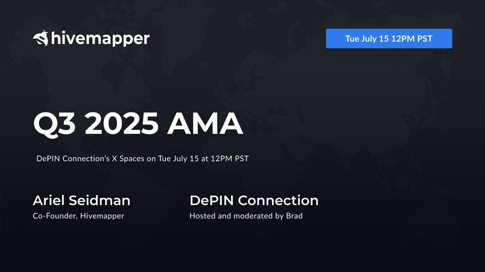 Hivemapper will host an AMA on X on July 15th at 20:00 UTC, to be hosted by DePIN Connection and featuring founder Ariel Seidman answering community questions.