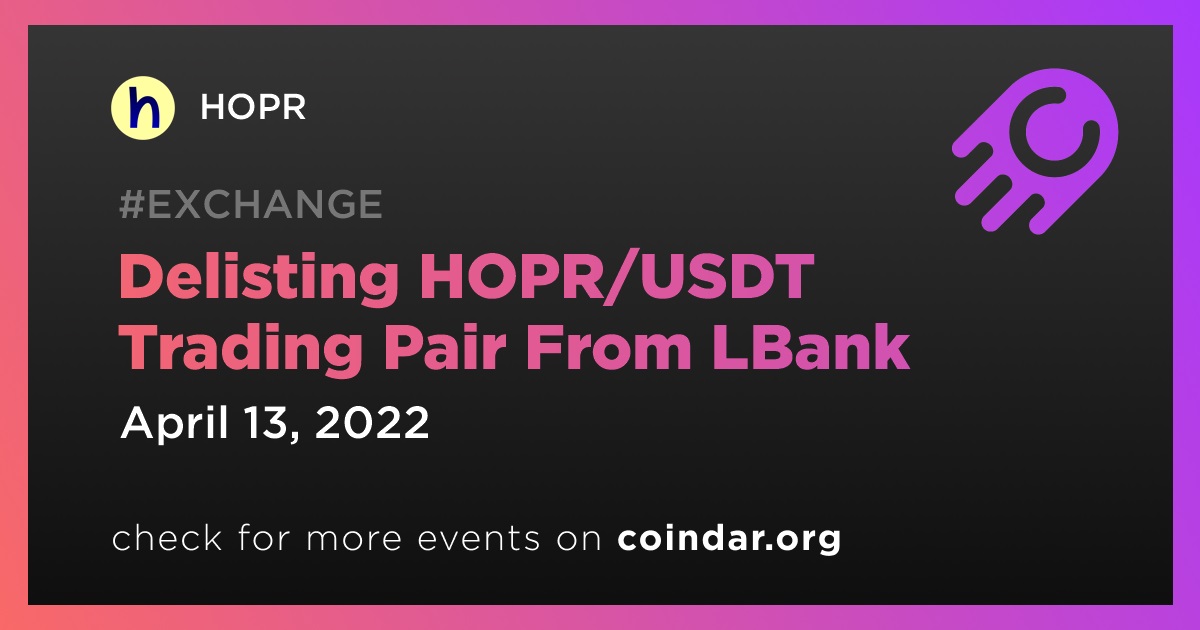 HOPR: Delisting HOPR/USDT Trading Pair From LBank