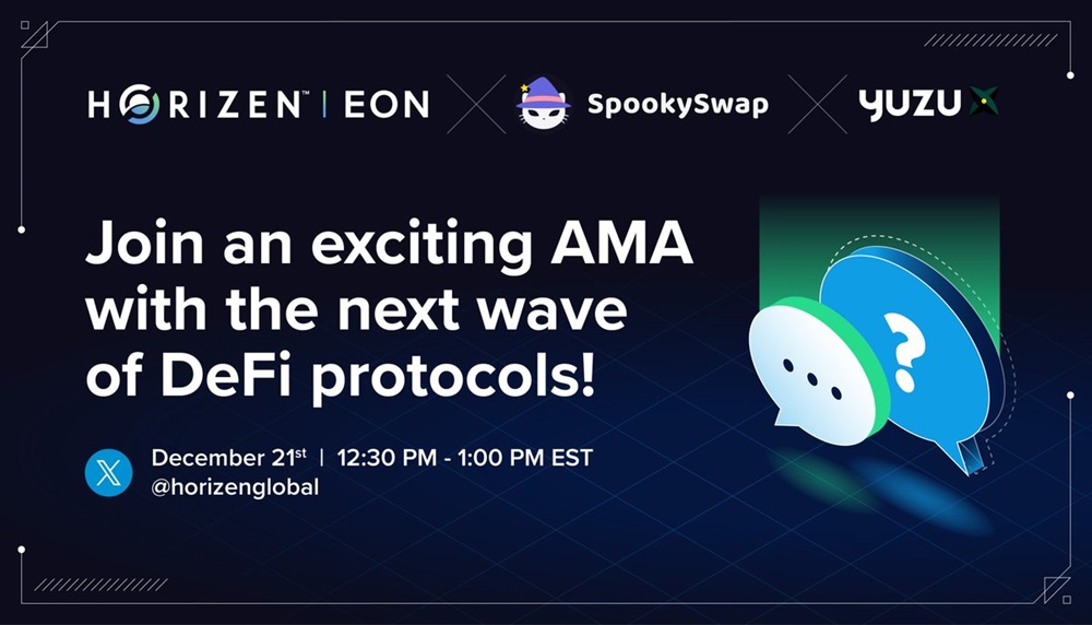 Horizen will host an AMA on X with SpookySwap and Yuzu on December 21st. The discussion will focus on the upcoming wave of DeFi protocols.