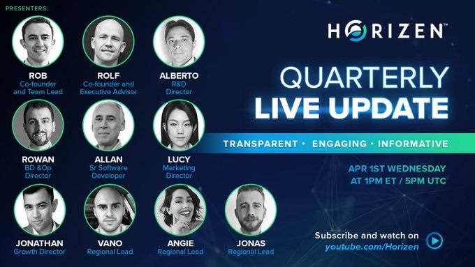 The team has updates on #HorizenSidechains, active and complete project timelines, and there will be a live Q&A at the end.