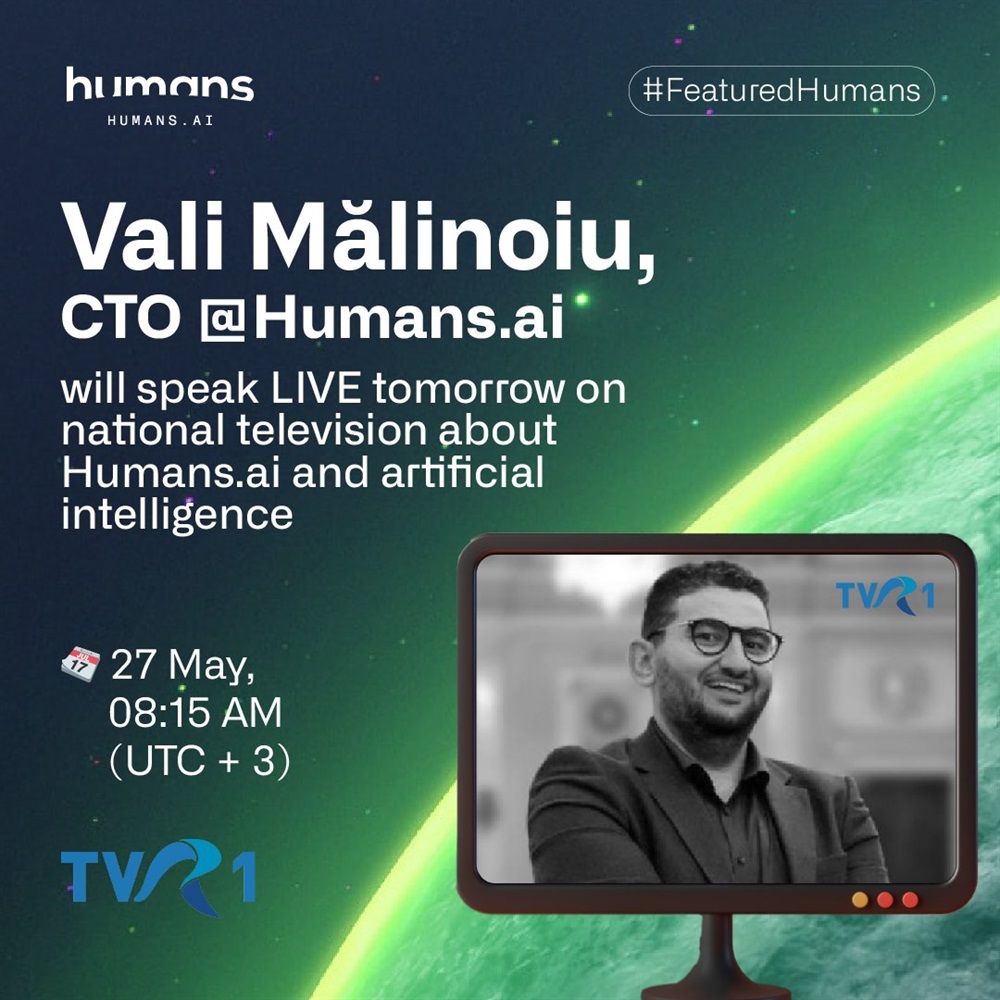 📺 tomorrow, 8:15 am (UTC + 3), watch Vali Mălinoiu (@0x4139) on TVR1 channel talking about https://humans.ai/ and AI!