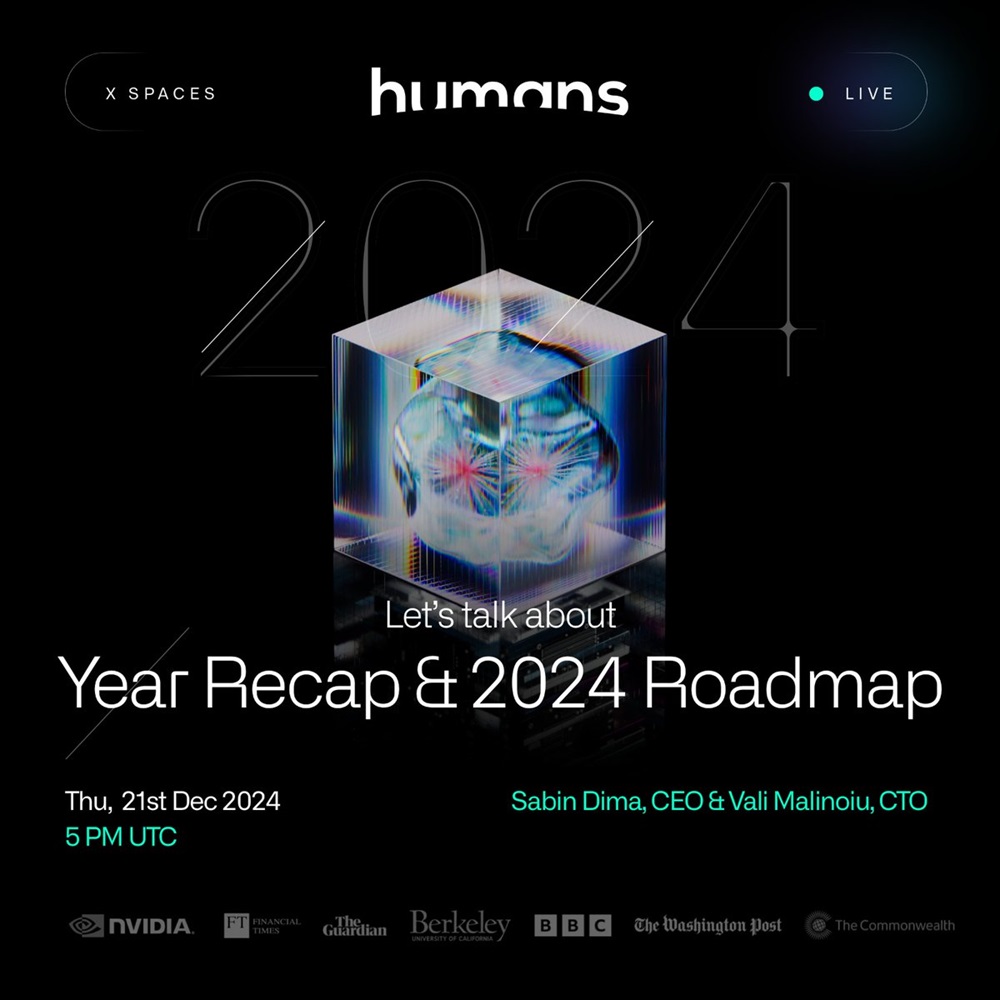 Humans.ai will host an AMA on X to present a review of the year and a new roadmap for 2024. The event will take place on December 21st at 17:00 UTC.