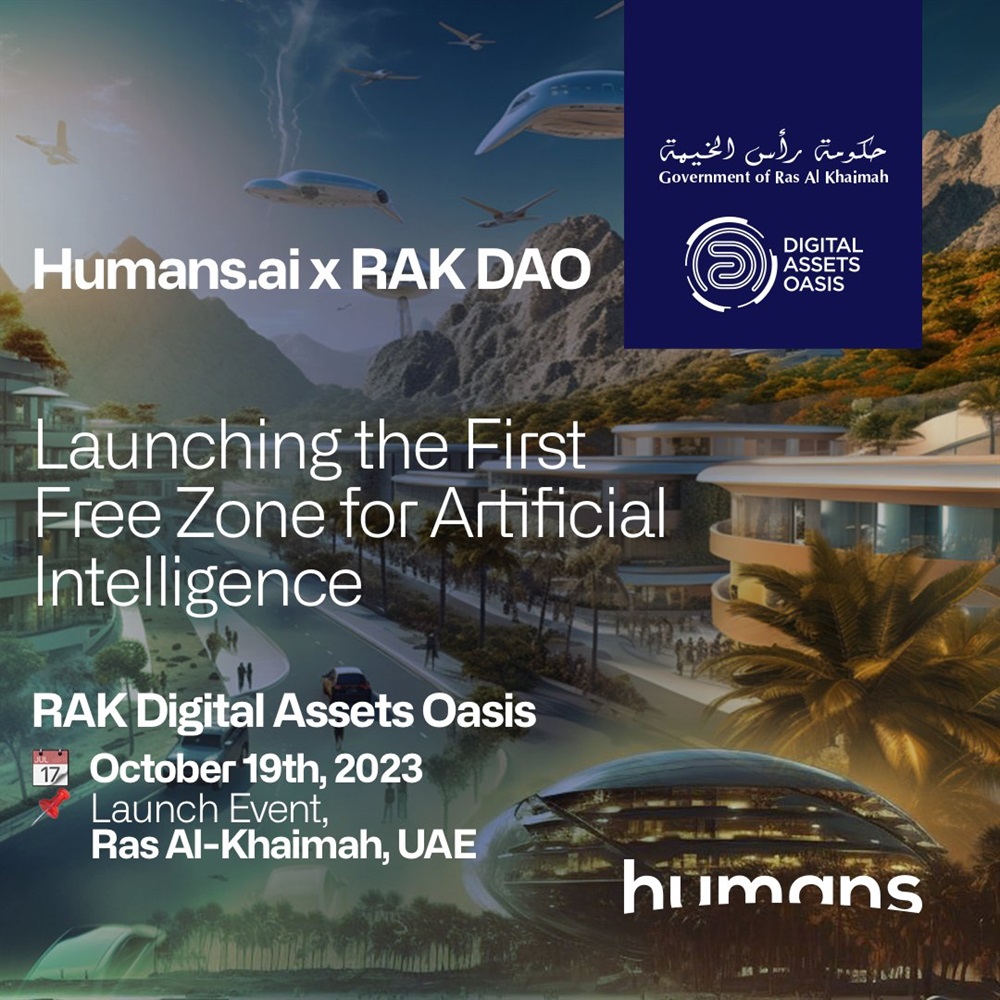Humans.ai, in collaboration with RAK Digital Assets Oasis, is set to launch the first free zone for artificial intelligence. The launch event is scheduled to take place on October 19th in Ras Al-Khaimah.