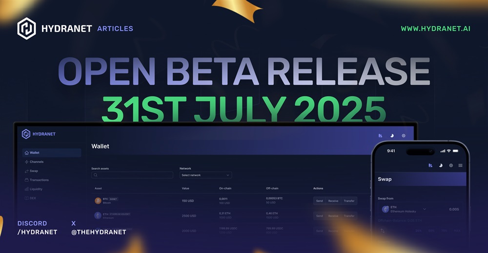 Hydranet, the Layer 3 decentralized exchange (DEX), has confirmed that its open beta will go live on July 31st. The platform aims to bring Bitcoin into the DeFi ecosystem by leveraging Layer 3 technology. Users will be able to interact with its DEX interface and test core functionalities ahead of the full release.