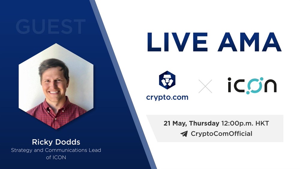 Live AMA with Strategy and Communications Lead of ICON Foundation Ricky Dodds on @cryptocom's Telegram Channel t.me on 21 May, 12PM HKT. Participate to share a pool of 1,500 ICX!💰 blog.crypto.com @helloiconworld @RickyLeeDodds