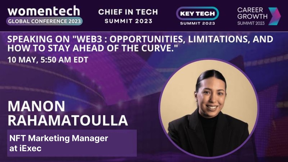 iExec NFT and Web3 Marketing Manager, Manon Rahamatoulla, will be speaking at the @WomenTechNet Women in Tech Global Conference!