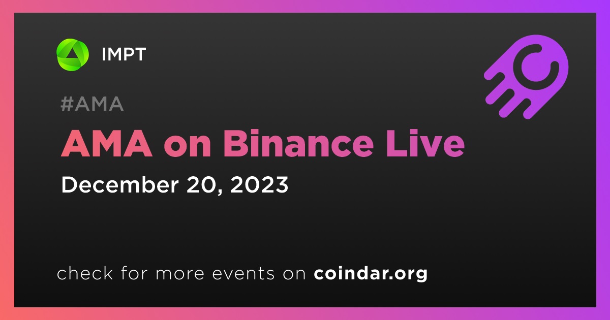 IMPT will host an AMA on Binance Live on December 20th at 16:00 UTC. The session will focus on exploring the utility and technology of IMPT.