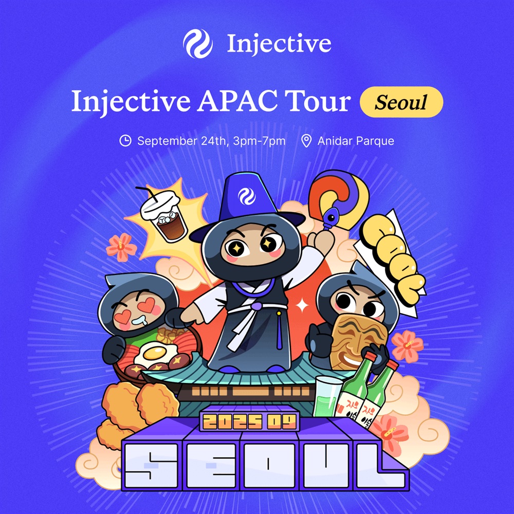 Injective will hold a garden-themed pop-up event in Gangnam, Seoul, on September 24 as part of its APAC Tour during Korea Blockchain Week. The gathering at Anidar Parque will offer attendees a relaxed setting with drinks, networking, and discussions on the future of INJ. Entry requires prior registration, and tickets are limited.