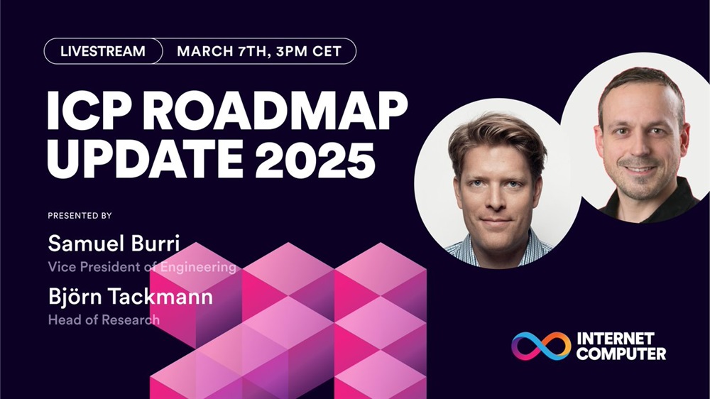 Internet Computer will hold a live stream on YouTube on its updated ICP roadmap, featuring the vise president of engineering Samuel Burri and the head of research Björn Tackmann. The event will delve into topics ranging from AI agents and core protocol improvements to integrations with Solana and Dogecoin.