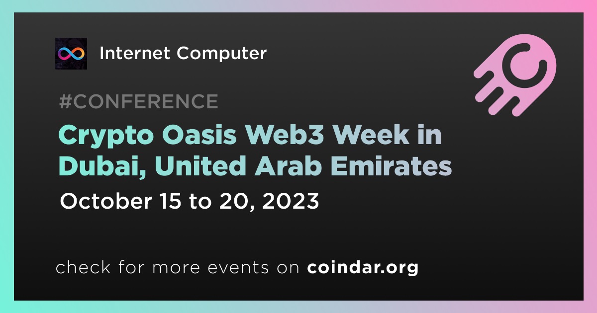 Internet Computer is set to co-host the esteemed Crypto Oasis Web3 week in Dubai. The event is scheduled to take place from October 15th to October 20th. The week-long event is dedicated to promoting innovation, collaboration, and forward-thinking in the field of cryptocurrency.