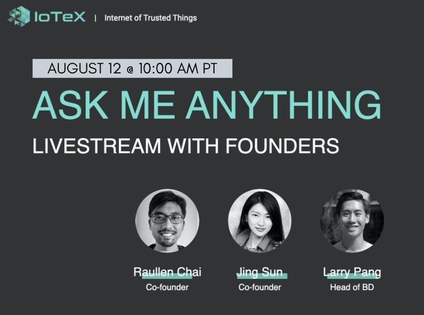 You can start submitting your questions now in our Telegram group (https://t.me/IoTeXGroup) + tag @Alina_IoTeX