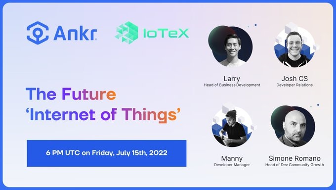 ICYMI - Join us tomorrow: @ankr x @IoTeX forThe Future ‘Internet of Things’ w @larrypang & Simone @zimne1 from @iotex_io