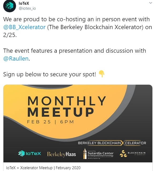 IoTeX co-hosting an in person event with The Berkeley Blockchain Xcelerator, February 25