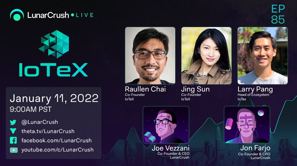 Join us on Tuesday, Jan 11 @ 9am PST as @Raullen @cbetass @larrypang explore the past, present, and future of IoTeX with our friends @joevezz @jonfarjo of @LunarCrush.