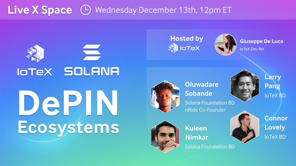 IoTeX will host an AMA on X featuring speakers from the Solana Foundation and IoTeX itself on December 13th at 5 pm UTC.