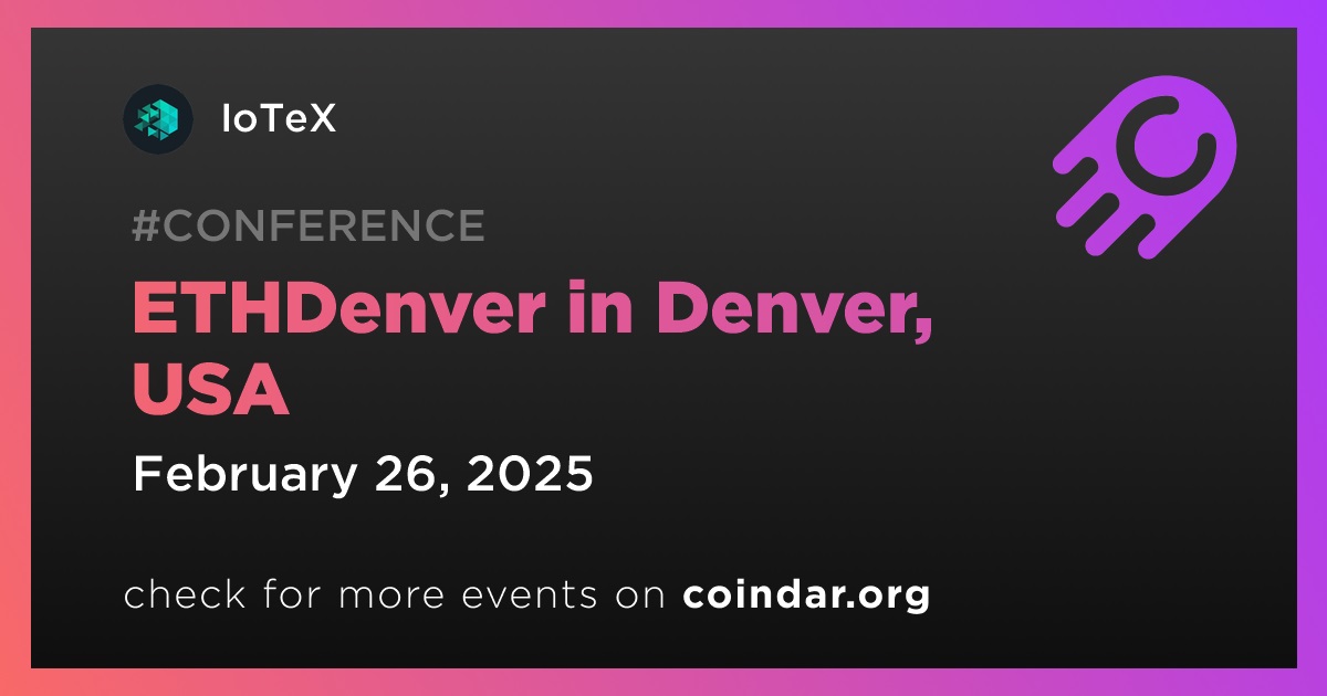 IoTeX will participate in the upcoming ETHDenver conference, hosting an event titled “DePIN AI” on February 26th in Denver.