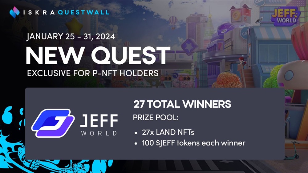 ISKRA Token is launching a new quest exclusive to P-NFT holders from January 25th to 31st. This quest is part of the JEFF World adventure, a Web3 initiative.