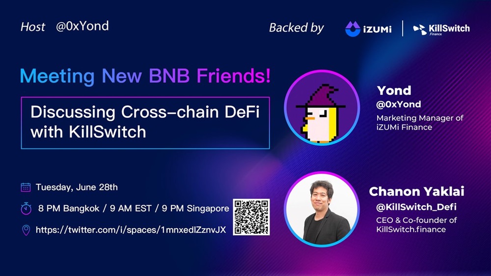 On Tuesday, June 28th, we'll be having a new episode of Meeting New BNB Friends with @KillSwitch_Defi to welcome their listing on #iZiSwap!