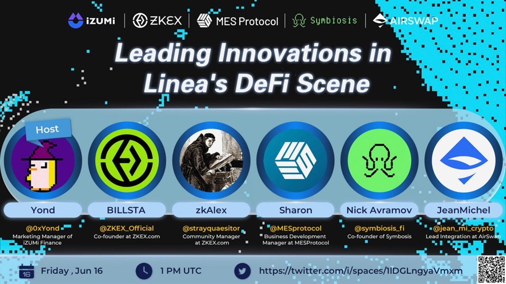 We're super excited to host @ZKEX_Official @MESprotocol @symbiosis_fi @airswap to launch the first episode of our #Linea Twitter Space series!