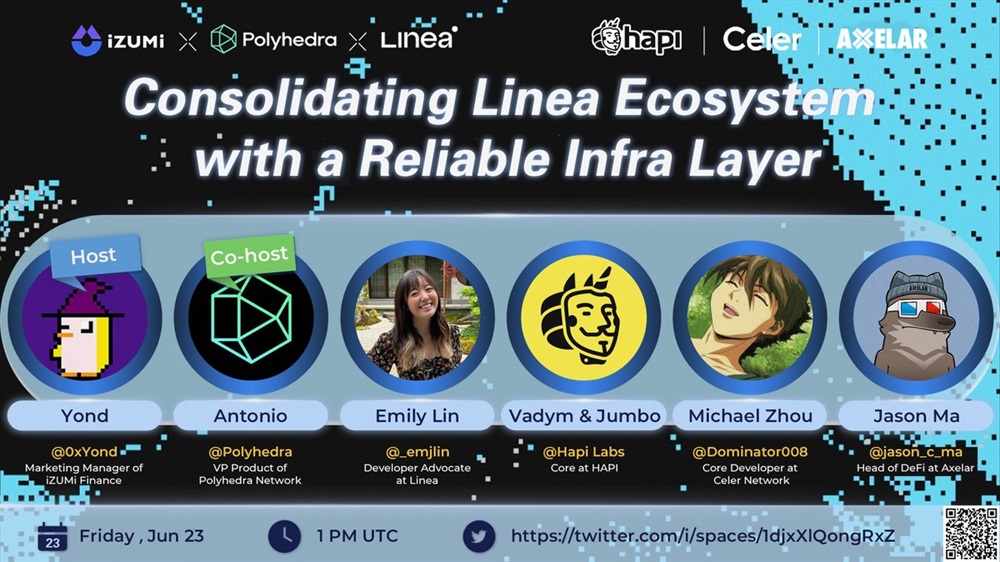 📣The hype for @LineaBuild continues! Join our #Linea talk this friday with @i_am_hapi_one @axelarcore @CelerNetwork with Antonio from @PolyhedraZK joining as the co-host! 🔥