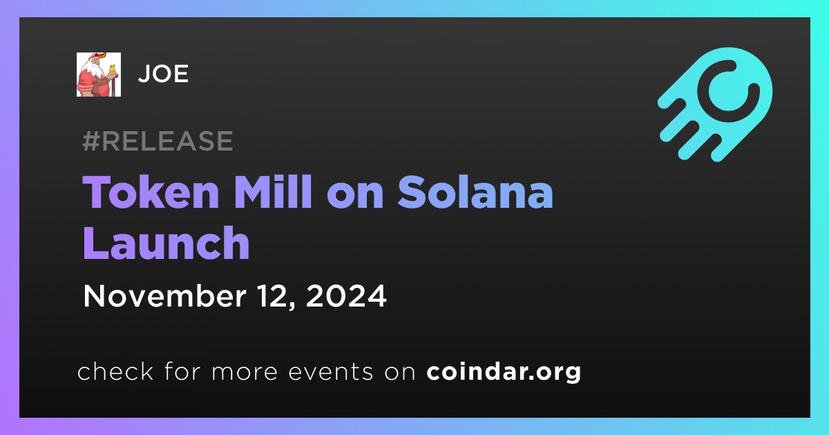 JOE has announced the launch of Token Mill on the Solana blockchain, scheduled for November 12th. Token Mill introduces an optional vesting feature that allows creators to obtain a guaranteed initial purchase of their launched tokens.