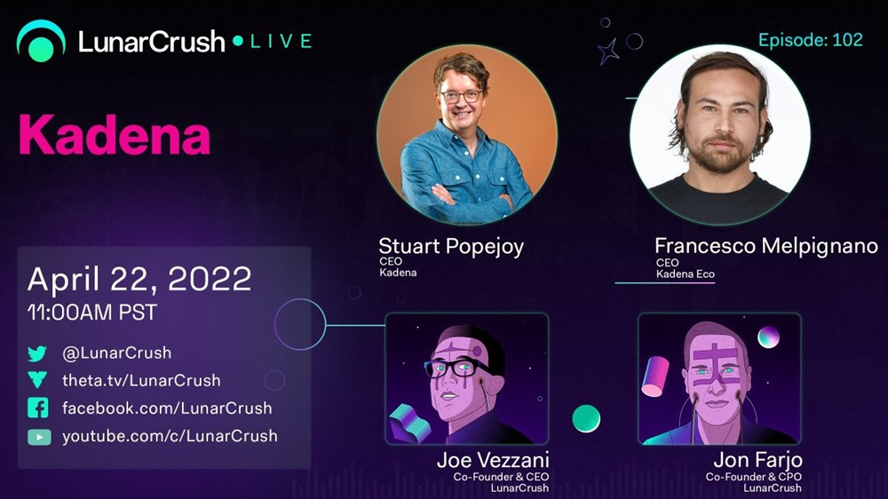.@Kadena_io’s CEO @SirLensAlot & #KadenaEco’s CEO, @fmelp, will be on @LunarCrush Live this Friday (4/22) at 11am PT!