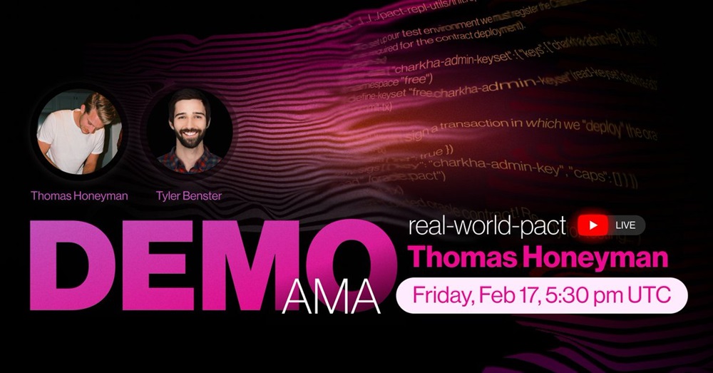 Makes sure to set a reminder for our very first Kadena.js AMA with @tbenst and Thomas Honeyman on 02/17 at 5:30 pm UTC.