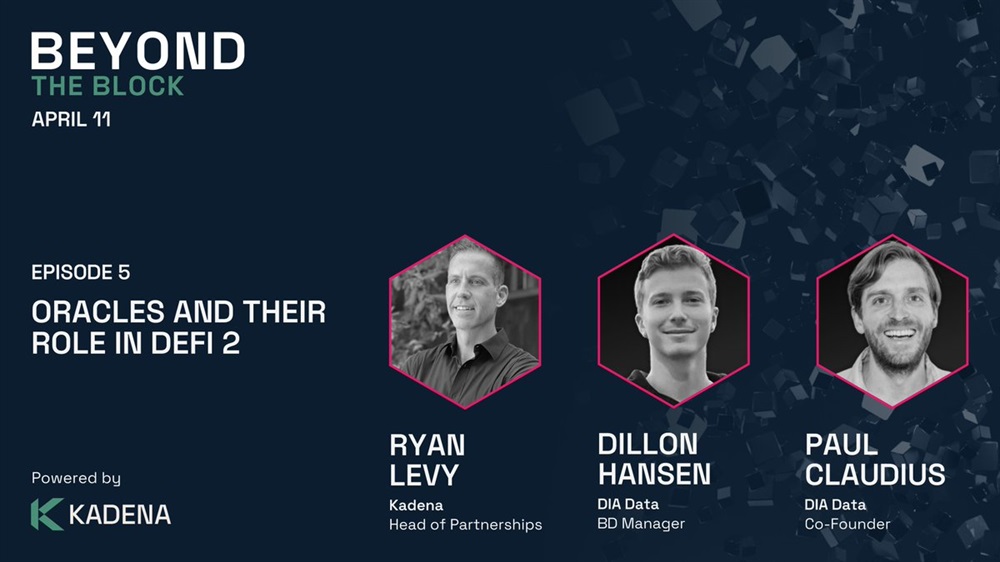 Kadena will host a live stream on YouTube on April 11th. The episode will feature a discussion between Dillon Hanson, BD manager, from DIA, Paul Claudius, co-founder, from DIA, and Ryan Levy, Kadena’s head of partnerships. The conversation will focus on oracles and their role in decentralized finance (DeFi).
