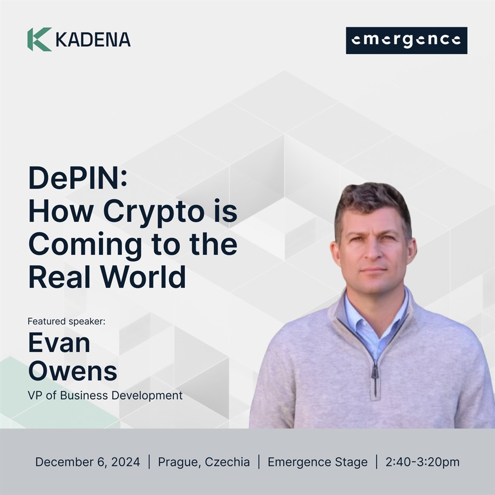 Kadena’s vice president of business development, Evan Owens, is scheduled to attend the Emergence Conference to participate in a panel discussion titled “DePIN: how crypto is coming to the real world” on December 6 in Prague.