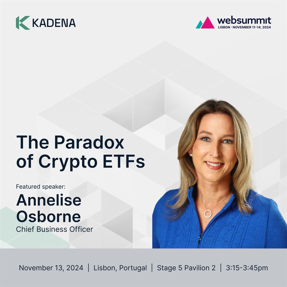 Annelise Osborne, Chief Business Officer at Kadena, will be attending Web Summit on a panel about "The Paradox of Crypto ETFs".