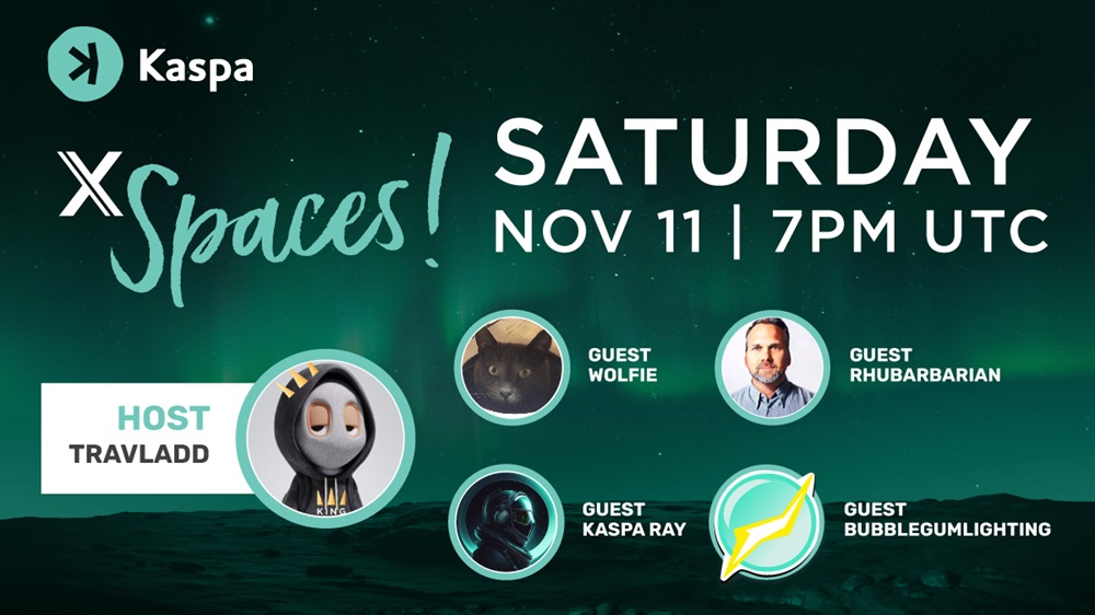 Join us as this saturday as we discuss all things #Kaspa, with Travladd Crypto