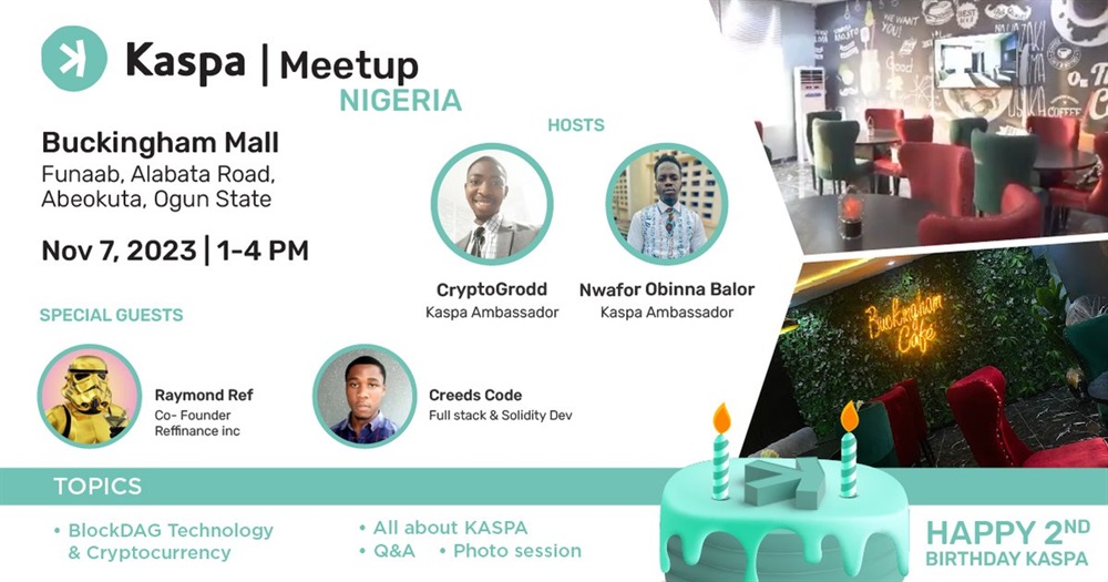 Kaspa will participate in the meetup in Lagos on November 7th.