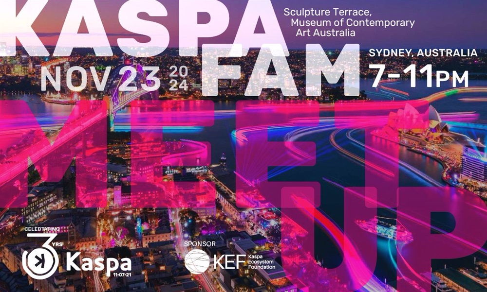 Kaspa will host a meetup in Sydney, Australia, to celebrate its third anniversary. The event is scheduled for November 23 from 08:00 to 12:00 UTC at the Sculpture Terrace, Museum of Contemporary Art.