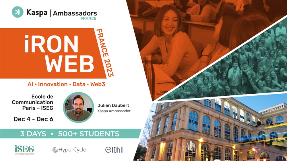 Kaspa will participate in the IronWeb in Paris from December 5th to 6th. Over 500 students will be participating in this event, delving into the realms of artificial intelligence, data, and Web3. The competition will see each participant utilizing Kaspa’s technology, specifically its payment system, for their respective projects.