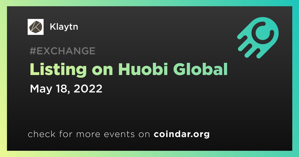 We're happy to announce that $KLAY will be listed on @HuobiGlobal on 18th May! 🔥 You may deposit your $KLAY now and can look forward to KLAY/USDT spot trading (KLAY/USDT) coming soon~ 👍 💪 ow.ly