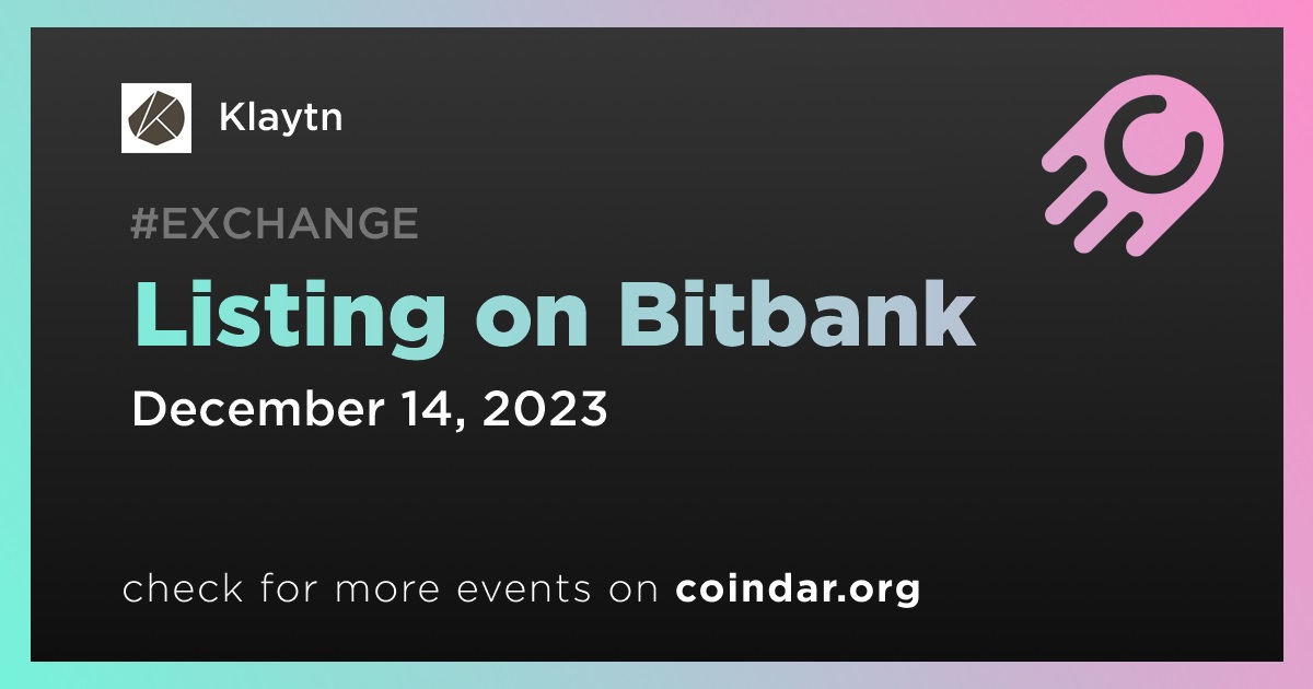 Bitbank will list Klaytn (KLAY) on December 14th.