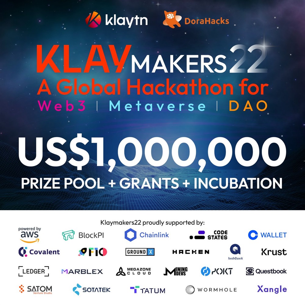 Klaytn, in collaboration with DoraHacks, is organizing its flagship hackathon, Klaymakers2022. The event will feature a prize pool worth US$1 million. The hackathon is specifically targeted towards developers proficient in solidity. The event will take place from August 29th to October 14th.
