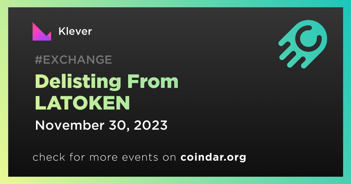 LATOKEN will delist Klever (KLV) on November 30th.