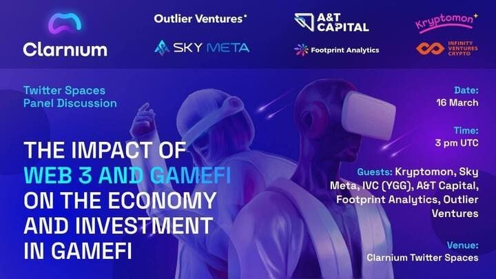 Join us and @Crypt0Shmipt0 (CBDO) tomorrow at 15:00 UTC for a Twitter Space with @clarnium_io on “The Impact of Web3 & GameFi on the Economy and Investment in GameFi”.